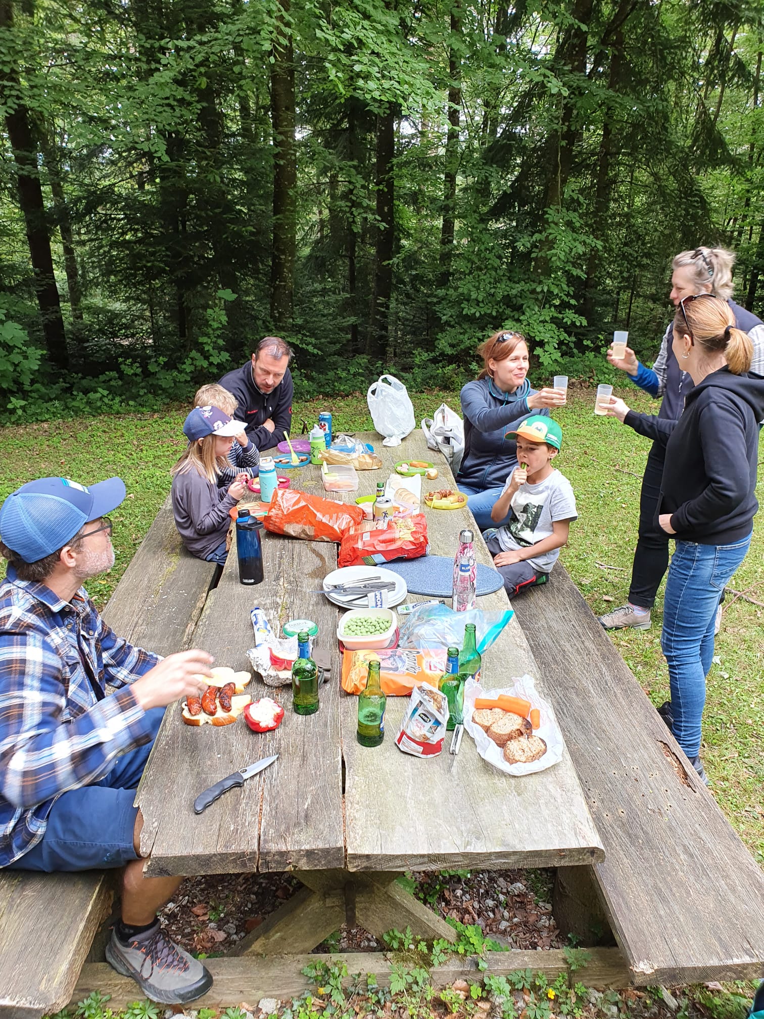 Zurück beim Waldhaus gab es dann erst Mal etwas für auf den Grill. Bei Bier, Würsten, Rippchen und Schlangenbrot genossen wir die wohlverdiente Pause nach der Wanderung und den Tag gemütlich ausklingen liessen.